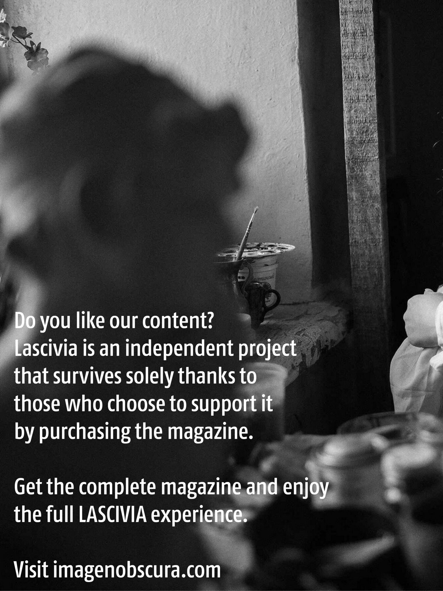 Gracias a quienes descargan la versión gratuita y siguen leyendo mes a mes. Y, de manera muy especial, gracias a quienes deciden apoyar económicamente la revista. Porque son ustedes quienes hacen posible que esto exista. Sin ese apoyo, Lascivia simplemente no podría sostenerse.